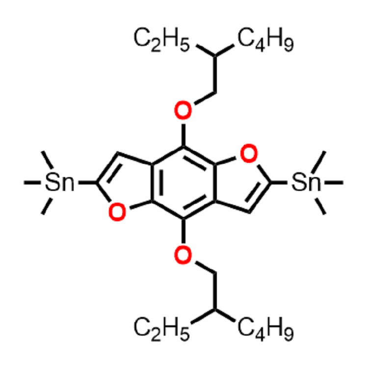 中文名稱:(4,8-雙-(2-乙基己氧基)-2,6-雙(三甲基錫基)苯并[1,2-b;4,5-b']二呋喃)